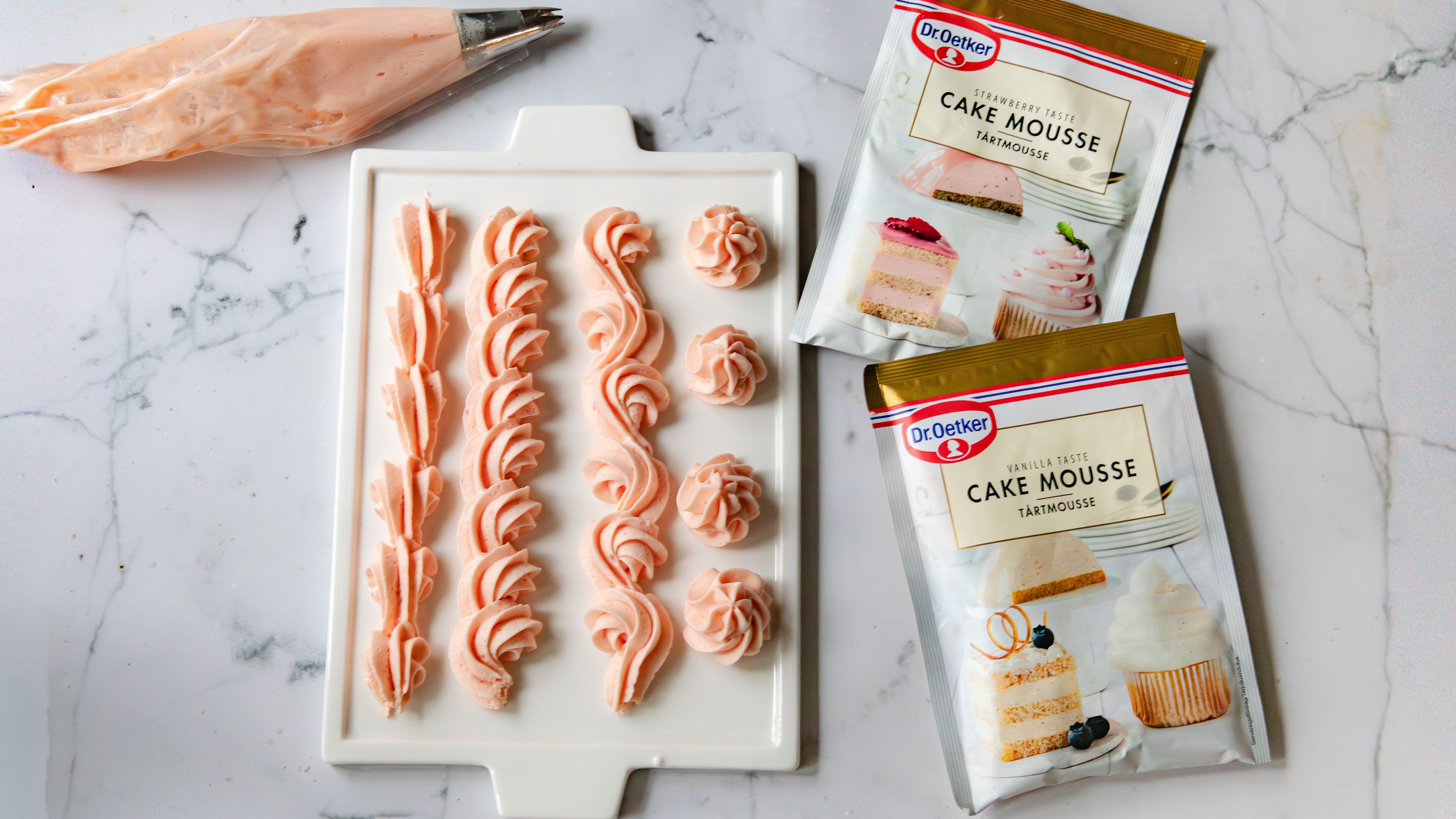 Pursotuksiin soveltuvat erilaiset vaahdot, kuten kermavaahto, voikreemi tai riittävän tukevan koostumuksen omaavat mousset. Dr. Oetkerin valmiit moussejauheet sopivat erinomaisesti pursotuksiin ja pursotusharjoitteluihin.
