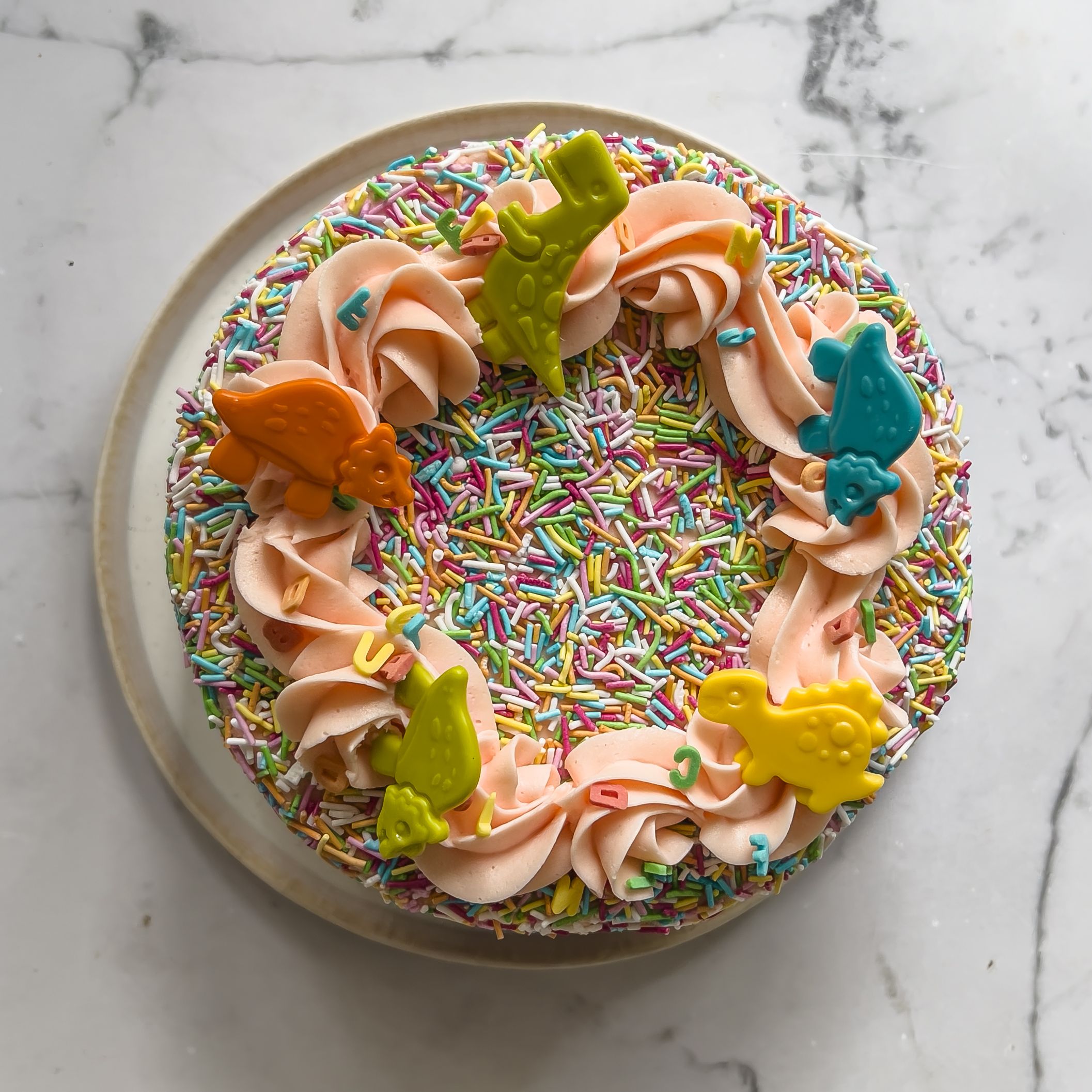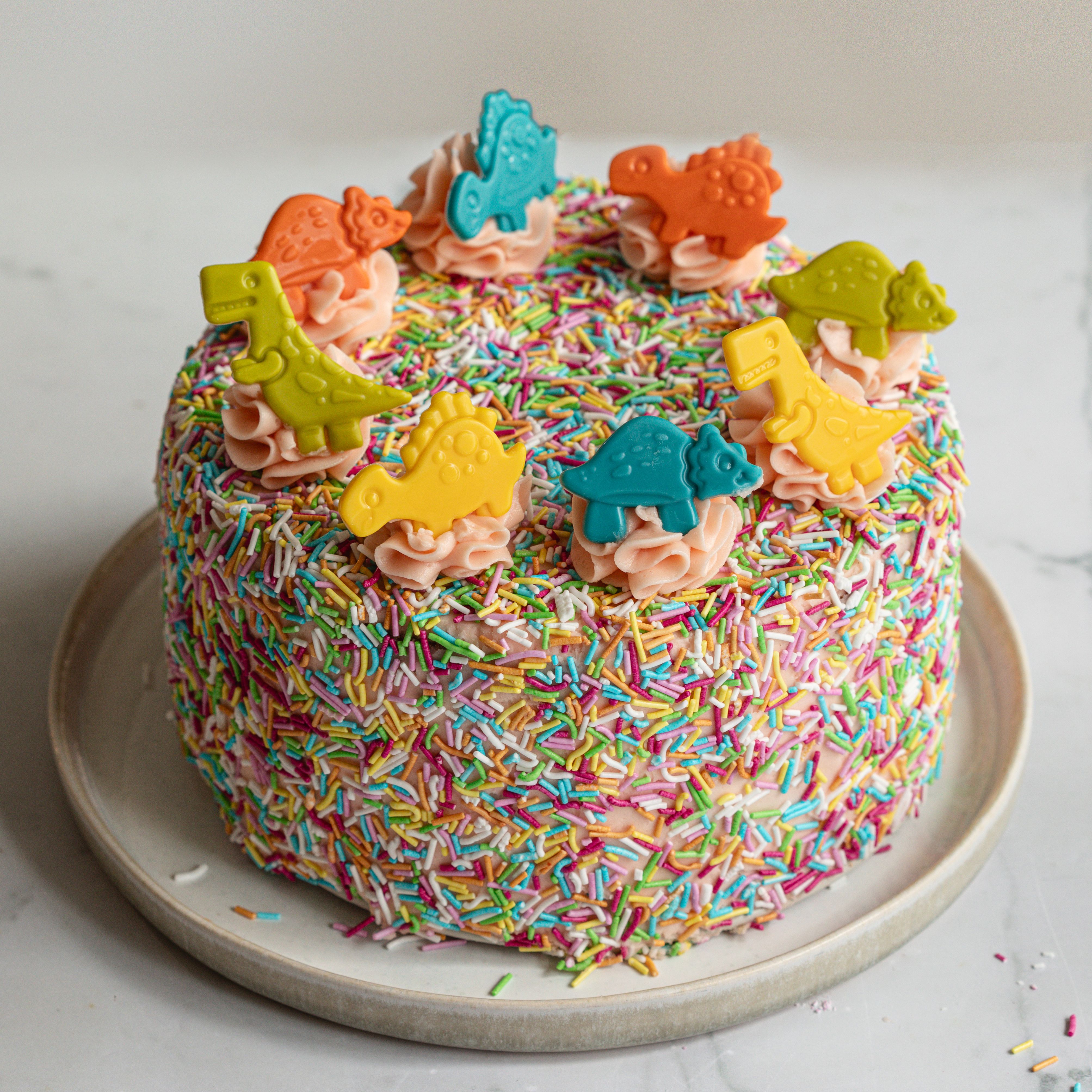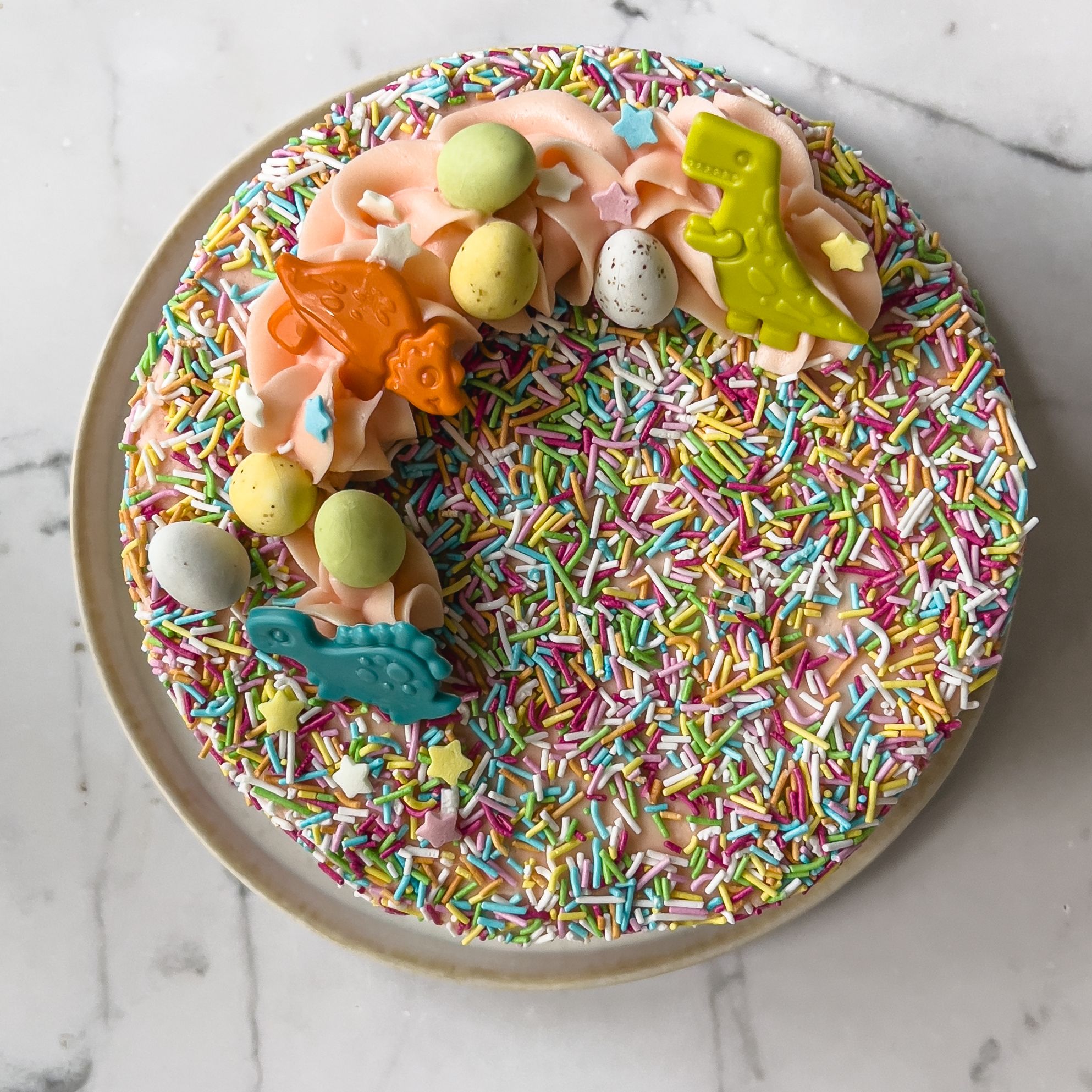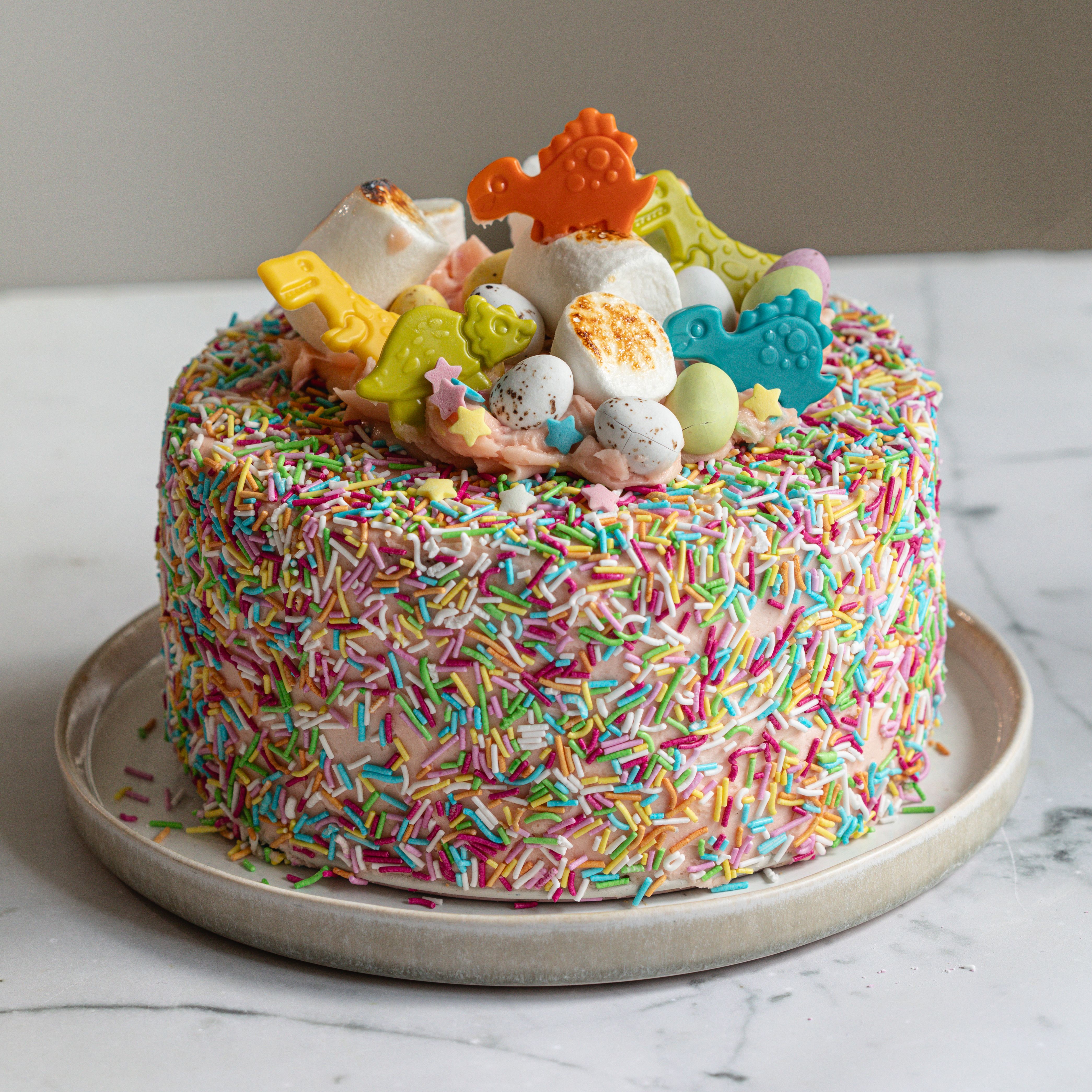 Jos haluat nopeasti valmista, kasaa koristeet keskelle kakkua huolettomaksi röykkiöksi. Tämä muoto toimii loistavasti esimerkiksi marenkien ja marjojen kanssa tai makeisten kanssa.
